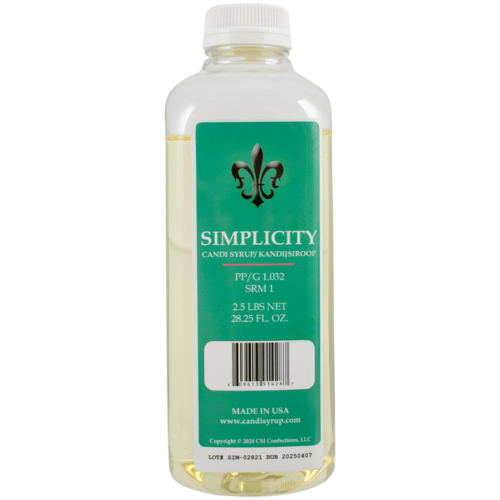 Simplicity Candi Syrup™ is a premium clear Belgian-style syrup crafted for brewing excellence. Designed with high fermentability in mind, this syrup provides a delicate boost to gravity without adding excessive color or heaviness. Simplicity is ideal for crafting authentic Belgian-style Saisons, Tripels, and Golden Ales.