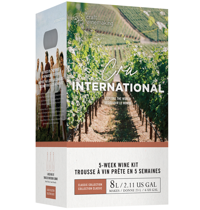 Craft a refreshingly crisp, dry rosé in the timeless French style with the Cru International French Rosé Wine Kit. This 8-liter concentrate kit produces up to 23 liters (approximately 30 bottles) of elegantly pink, light-bodied wine with a medium mouthfeel and a dry finish.
